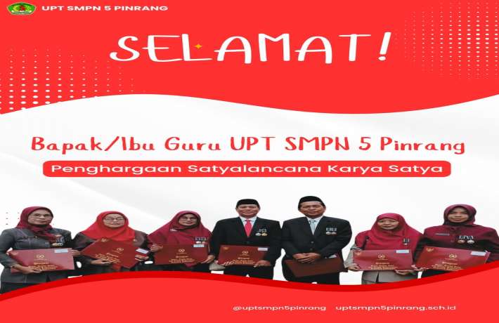 Selamat kepada Bapak-Ibu Guru UPT SMP Negeri 5 Pinrang yang telah menerima Piagam Penghargaan Satyal