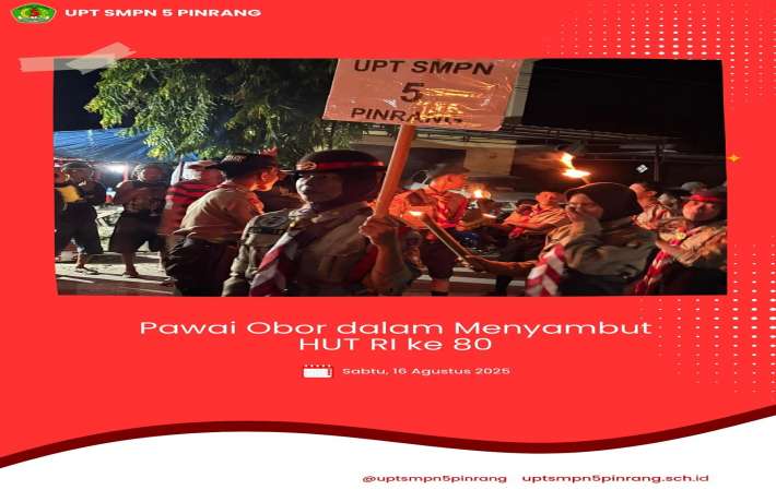 PRAMUKA UPT SMP Negeri 5 Pinrang mengikuti Pawai Obor menyambut HUT RI ke 80